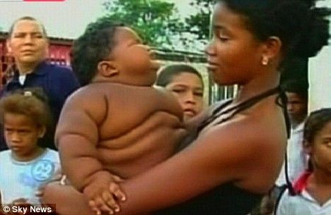 據(jù)報道,這名11個月大的“超級胖小子”名叫德恩·阿古德羅,他的母親米萊娜·歐羅斯科和父親拉蒙·阿古德羅都住在哥倫比亞西北部巴蘭基利亞市貧民區(qū)。米萊娜稱,2007年9月兒子德恩剛出生時體重還算正常,看上去跟一般的新生兒沒什么兩樣。但是沒想到他長到2個月大時,突然體重開始迅速飆升。