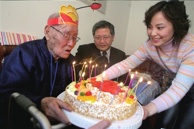 生于河北豐潤的王會川于1980年定居北京,自稱“半個北京人”,自2006年8月,102歲的他因腰疼查出患肝癌后,至今已在醫院進行了2年多的治療。目前,老人身體狀況穩定,腫瘤未出現轉移。今年,他的生日與大年三十恰為同一天,便要求出院,與家人共同慶祝“雙喜臨門”。