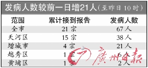 廣州市應急管理部門相關負責人向媒體通報,截至昨日上午10時,廣州市累計接到21宗疑似瘦肉精中毒事件報告,發病共67人,較前一日的報告新增加10宗,增加病人21人。目前僅有7人留院觀察,4名患者在永和醫院,3名學生患者在廣州市兒童醫院,所有留院觀察病人情況穩定,已無明顯癥狀。