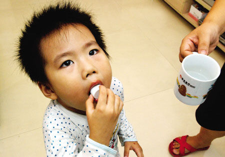懂事的小雅吃藥的時(shí)候很聽(tīng)話,一口就把藥吞下了