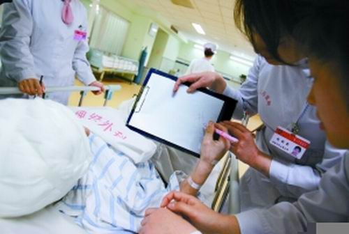 “從大年初六起,他就陸續在病歷卡上涂寫。”昨日,該醫院神經外科副主任醫師閆潤民回憶,趙某曾寫下自己的姓名,但只能辨認出前兩字為“趙香”。