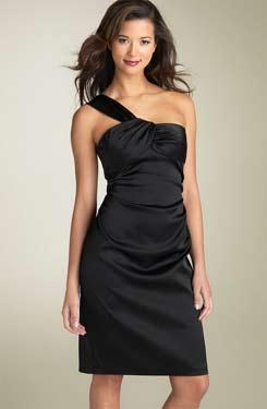 單肩——不對稱的美麗!配上胸部輕描淡寫般的皺褶,無需更多修飾就很完美的一條小黑裙,但不適合肩膀寬的女人。