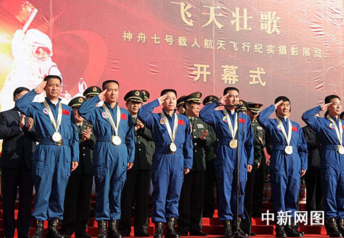 11月9日,以“再現(xiàn)‘神七’飛天全過(guò)程 記錄漫步太空經(jīng)典時(shí)刻”為主題的《飛天壯歌——神舟七號(hào)載人航天飛行紀(jì)實(shí)攝影展覽》,九日在北京中國(guó)人民革命軍事博物館開(kāi)幕。