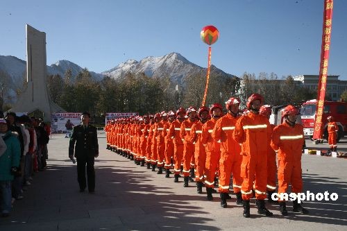 圖為擔負消防、救災等任務的西藏救援武裝力量首次集體亮相。