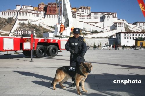 圖為消防特警在布宮前展示快速反應能力。中新社發 賈長飛 攝