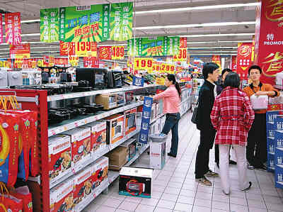 加濕器、電飯鍋、微波爐……商場里各式電器讓人眼花繚亂。