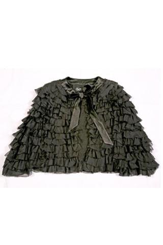 層疊的薄紗荷葉邊會在微風吹起的瞬間泛起無數漣漪,這讓神秘的黑色斗篷充滿爛漫的味道。不要被堆疊的體積感所影響,這件D&G實屬輕薄的動感單品。