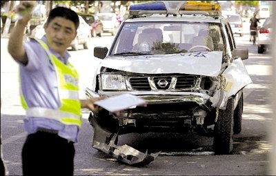 李先生隨即攔下一輛過路車,向西追去。皮卡在路上畫著“之”字形跑,逆行了100多米后,撞上了一輛正常行駛的送報自行車,送報員連人帶車重重摔倒在地。而皮卡車繼續(xù)向前逆行了100多米,沖過順義五中大門,一頭撞上便道上的一棵樹后才停了下來。李先生和其他目擊者走近前發(fā)現(xiàn),肇事的皮卡原來是一輛城管執(zhí)法車,車上僅司機一人。該司機不是城管隊員,而是一名城管協(xié)管員。