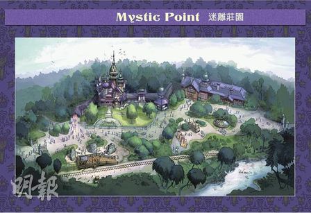 “迷離莊園”坐落熱帶雨林中心地帶,內建一棟“迷離大宅”,主人是個孤僻的旅行家和冒險家,大宅內藏有各類奇珍異品。游客以4人為單位,乘坐無軌驅車系統操作的小車,跟著“百厭”猴子,在大宅自由地“飄移”,猴子更會打開魔法八音盒,釋出內里神秘力量,掀起連連怪事,奇幻影像四飛,賓客會遇上采用“發聲機動”的塑像和特別視聽效果。
