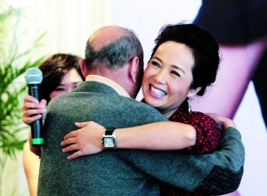 蔣雯麗本月雙喜臨門,剛憑借《立春》獲得金雞影后,其導演處女作《我們天上見》又在韓國釜山電影節上榮膺“最受觀眾喜愛電影大獎”。雙獎在手的蔣雯麗昨日偕《我們天上見》的主演朱旭等在京慶功,可惜慶功宴上丈夫顧長衛姍姍來遲,活動已經結束了才出現,連話都沒來得及說上一句。