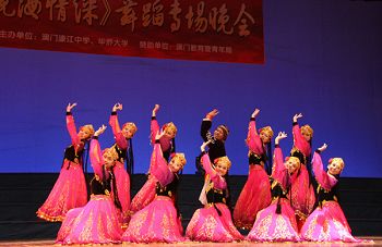 中新網12月1日電 據華僑大學網站消息,由澳門教育暨青年局贊助,澳門濠江中學、華僑大學共同主辦的慶祝新中國成立六十周年暨澳門回歸祖國十周年《鏡海情深》舞蹈專題晚會,30日在華僑大學陳嘉庚紀念堂觀眾廳精彩上演。
