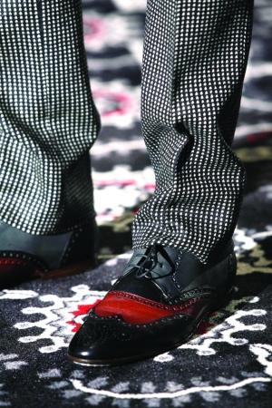 休閑西裝配隨性牛仔褲,頸間隱約露出一小段彩色方巾,這樣的男人已經會令女人多看他一眼;如果他腳上蹬著的那雙中幫皮靴里不經意地露出一截彩色毛線褲襪,那一定會引來探究的目光。這是今年秋冬大牌男裝設計師推出的最酷的“童趣”裝扮,讓男人借著孩提時代一雙彩色毛線褲襪回味童年時光,也算是一種心靈瑜珈吧。