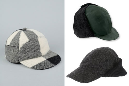 順時針, 左起: Opening Ceremony 伐木工人棒球帽, $143; L.L. Bean 監獄看守帽, $45; J. Crew羊毛棒球帽, $58.