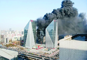 “轟”的一聲,一股黑色濃煙從樓頂騰空而起,“像大樓爆破一樣!币幻繐舻某鲎廛囁緳C介紹說,當時他正開車經(jīng)過樂成國際購物中心,隨著一聲炸響,購物中心三樓頂層的設(shè)備間起火,四周的隔板都隨著顫動,火苗也從擋板縫隙往外躥,“我開車到了廣渠門內(nèi),還能看見濃煙。”