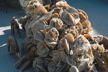 突尼斯有“沙漠玫瑰”的美譽(yù),在突尼斯、阿爾及利亞、摩洛哥等北非國家,還有另一種“沙漠玫瑰”,非常有名。不久前,記者去突尼斯采風(fēng),看到了這種從沙漠里面挖出的沙漠玫瑰石,因?yàn)樗男螤詈芟袷㈤_的玫瑰花,所以得名。