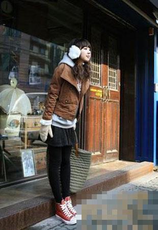 棕色、黑色作為秋冬的主打顏色,要找到適合的搭配方法實在是太容易不過了。偏愛棕色的皮夾克,因為它復古又保暖,下身的短裙和中邦帆布鞋形成了學院風格,但又帶點性感,大膽積極的天蝎座女生不妨試一試!
