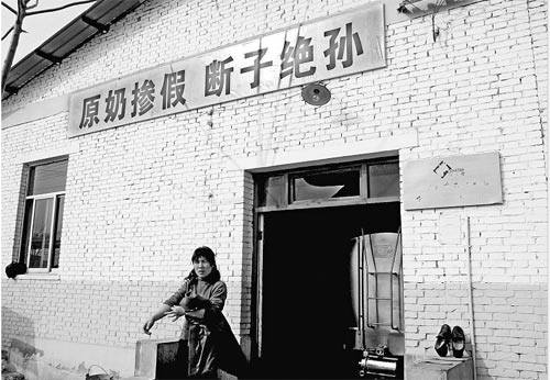 涇陽縣多家奶廠,近日都貼出同樣內容的一條雷人標語:“原奶摻假,斷子絕孫”。涇陽縣蔣路鄉澳西牧場63歲的飼養員董學文說,看到這個標語就不舒服。張貼標語的公司希望各方面汲取三聚氰胺事件的教訓,標語的目的在于警示,也表明企業抓質量的態度。牧場總經理梁軍表示,他能理解公司這么做的初衷,但內容值得商榷。(魏光敬 謝勇強攝影報道)