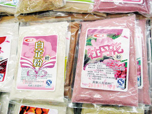 些敷臉的粉末不在護(hù)膚品分類中出現(xiàn),而是在超市的面粉區(qū)域銷售,也有近百種之多,將水果、蔬菜以及堅果的提取物同面粉結(jié)合,這樣的粉可以用溫水調(diào)和,用小火或微波爐煮制食用,也可以加蛋清或蜂蜜敷臉,其實喜歡DIY面膜的女士們一定知道,用蛋黃混合面粉而成的面膜薄薄地涂在臉上,可滋潤皮膚。只不過現(xiàn)在我們食用的面粉可以用這些特殊的面粉代替了,會有更多的功效在里面,比如美白、抗敏、排毒等功效?蛇x擇的有杏仁粉、枸杞粉、玫瑰花粉、苦瓜粉、淮山粉、薏仁粉、檸檬粉、蘆薈粉、白芷粉、紅豆粉、綠豆粉、杜鵑花粉、黑木耳粉、荷葉粉等等。70克一小袋兒要花費(fèi)近17元,顯然敷臉比食用更劃算些。(文/攝 孫小雅)