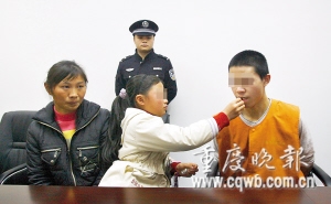 因為與人結伙搶劫,昨日上午10時50分,15歲少年王言在渝中區法院少年法庭受審。王言11歲的妹妹從100多公里外的老家趕到法院,給哥哥送來兩顆糖。