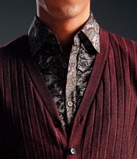 針織開衫又回歸了,自稱紳士的Chuck 當然不會拒絕它的誘惑,搭配悶騷的彩色暗條紋西服套裝散發成熟魅力,唯一不能戒掉的就是亮色絲巾和Chuck 式壞笑。