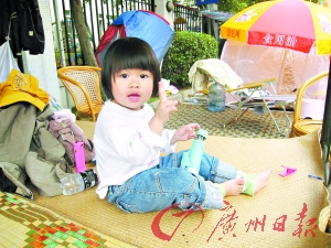 梁女士說,為了兩歲半的小女兒能夠順利入讀,她早早就來到幼兒園門外,扎起小帳篷,開始了長達7天的守候,現在已經守了5天了。雖然很辛苦,但梁女士認為,只要為了孩子,付出都是值得的。梁女士還告訴記者,她碰到一位“80后”的媽媽說,“只要孩子能上好學校,別說一星期,我就是排一個月隊也值了!