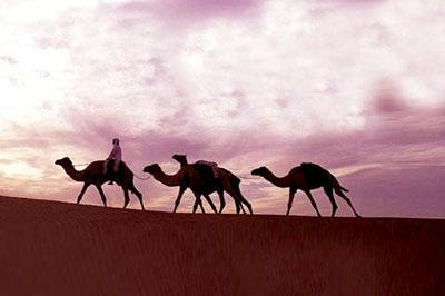 騎駱駝是沙漠之旅的重要環(huán)節(jié)之一,進(jìn)入沙漠,馳騁在雄偉空曠的茫茫沙海之中,盡享“鞍上樂趣”。視線所及之處,都是沙山。連綿起伏的沙丘,映襯著蔚籃的天空,在明亮的陽(yáng)光下,猶如金色的山峰。當(dāng)微風(fēng)輕輕吹過,兩邊一望無際的沙漠便卷起星星點(diǎn)點(diǎn)的黃沙,在前方的公路上旋轉(zhuǎn)、飄舞。