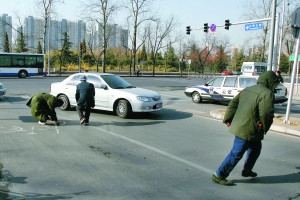 昨早8時,一輛金杯車從石景山路與上莊東街相交路口欲拐向去八寶山殯儀館西門時,突然車上撒下許多硬幣,兩位中年人跑向路口撿錢,車輛不得不暫停。當另一輛車駛入八寶山殯儀館西門時,再次撒硬幣,兩位老人迅速跑向車旁撿。