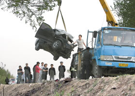 鄒先生說,事發時,公路西側停著一輛拉豬的車,一輛毛驢車從北向南走,欲繞過停下來的拉豬車。這時,肇事的本田轎車從北向南行駛,要超過這輛毛驢車。出事的羚羊轎車恰好由南向北駛來,兩車撞到了一起。