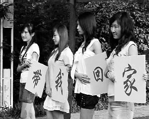 這幾名女孩手舉著“帶我回家”的牌子,為婚介網做秀