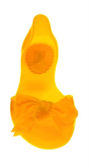 黃色蝴蝶結果凍鞋(GNC,328元)黃色的平跟蝴蝶結果凍鞋,一看就很柔軟舒適,鞋頭大大的蝴蝶結很搶眼也很精致。