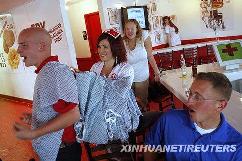 美國“心臟病燒烤”餐廳 食客穿病人服享受美食