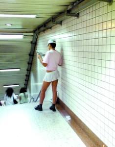 近日,一篇有關(guān)“迷你裙男”的帖子出現(xiàn)在上海幾大論壇,照片中一名男子頭戴白色遮陽帽、身著粉色T恤及白色超短裙,在軌交中山公園站內(nèi)倚著墻看報,沒有正面圖片。