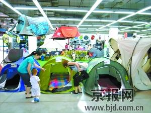 周末臨近,選擇外出避暑郊游的人們也多了起來,隨之而來,經(jīng)營戶外用品,特別是帳篷的商戶也迎來了銷售高峰。尤其是拆裝容易的休閑帳篷,更是受人青睞。 (記者甘南攝)