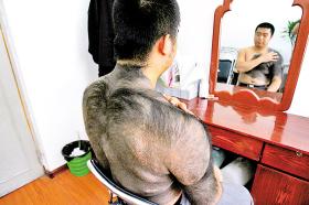 炎熱的夏天,23歲的小宋還穿著長袖衣服,熱得滿頭大汗。“不是我不怕熱,我是怕別人看到我身上的黑色‘毛坎肩’,又對我指指點(diǎn)點(diǎn)。”小宋口中的毛坎肩,其實(shí)是已經(jīng)伴隨了他20多年的黑毛胎記。