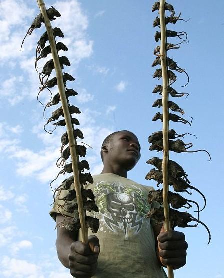 中國日?qǐng)?bào)網(wǎng)環(huán)球在線消息:你能想象嗎?處處被人喊打的過街老鼠如今在非洲國家馬拉維成為了當(dāng)?shù)厝搜壑械摹懊牢丁薄?jù)英國《每日郵報(bào)》8月9日?qǐng)?bào)道,如今不少馬拉維當(dāng)?shù)厝藢㈦缰苹蛘唢L(fēng)干的熟田鼠穿成串沿街叫賣,雖然田鼠“賣相有些猙獰”,但是銷路卻十分不錯(cuò)。