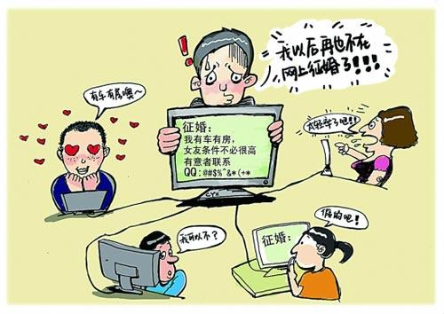 網友“Daniel”也對網絡征婚持否定意見。他說,自己曾經回復過別人的征婚帖,對方加了他QQ,也告訴他“我們從普通朋友做起”,但以后就再無下文。那之后他就對網絡征婚失去了興趣。