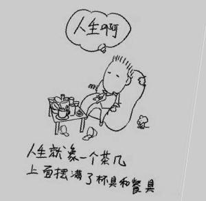 除了詞語之外,有關“杯具”的句子也被網友們“發展”了一下,其中最著名的“人生就像一張茶幾,上面擺滿了杯具”一句,便被稱為“人生是個杯具”之后的杯具箴言2.0版本。記者了解到,此句是網友仿照張愛玲的“人生是一襲華美的袍,上面爬滿了虱子”改寫而成。