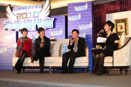 中新網1月25日電 昨日,國內最早啟用形象代言人的零售企業——蘇寧電器正式啟用第二代代言人。一線明星黃曉明、新星王珞丹成為蘇寧最新代言人。蘇寧表示,在蘇寧電器迎來二十周年之際,用兩名新代言人傳達蘇寧“為幸福做點什么”的品牌訴求。