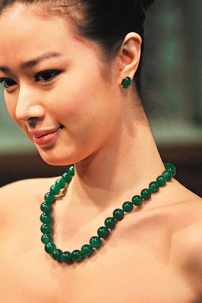 據香港文匯報報道,香港蘇富比下月7日舉行“瑰麗珠寶及翡翠首飾2010年春季拍賣會”,將呈獻320件閃爍絢麗的珠寶首飾,拍賣總估值逾3.69億港元。在蕓蕓珠寶中,最受注目非全長約530毫米、鑲嵌卡地亞鉑金鉆石扣飾的翡翠玉珠頸鏈莫屬。它由35顆直徑介乎12.55至15.04毫米的翡翠玉珠串連而成,顆顆頂級翡翠水份豐盈,溫潤亮澤,估價高達3,800萬至5,000萬港元,是全場估價最高的珍品。