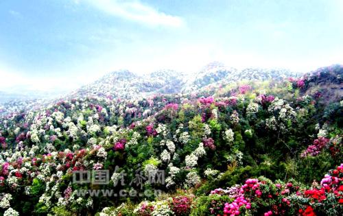 廣西金秀的圣堂山以萬畝變色杜鵑林聞名。四五月份是圣堂山變色杜鵑炫耀自己的鼎盛時節。萬畝連片變色杜鵑同時開放,樹樹繁花,令人陶醉不已。在陽光照耀下,杜鵑隨著花期變化而不斷變化花顏,由紅變紫再變白,每棵樹上紅、紫、白、黃競相開放,競相斗妍,在綠葉的襯托下就像一把把色彩斑斕的大花傘,山風吹拂,花浪翻滾,自然形成浩瀚花海。