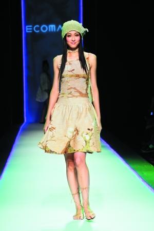 模特穿的時裝是用玉米桿作為原材料,低碳、環保。 記者 林建敏 攝