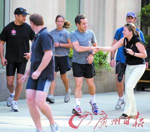 名人政要們跑步,身邊一大堆保鏢鐵定少不了的,被一堆保鏢圍在中間的法國總統薩科齊在跑步過程中還不忘和熱情粉絲握手,誰說運動和政治無關?據說運動還能治療失戀,失戀后的瑞茜·威瑟斯彭就愛上了跑步,小妮子拉上好姐妹一起運動,一身短打的她看上去精神很好。(柳翔岷)
