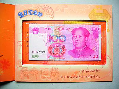 “這種生日鈔是真鈔的概率還是較大的!庇浾哒业胶弦恍锹蓭熓聞账~翔鋒律師,他認為,像這種在網上叫賣生日鈔的方式,可能是網民先通過網絡打廣告,拉到買家后,再從錢幣裝幀經營的專業公司進貨,加價轉讓。