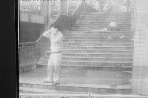 事后,我們通過監控錄像看到了那令人心碎的一幕。黃濤所在小區停車場比太極大道要低許多,黃濤夫妻要通過太極大道上的太康醫院旁邊的幾十級臺階,才能走到太極大道上。監控錄像顯示,黃濤走在右邊,妻子走在左邊,夫妻緩緩邁上了臺階,往太極大道走。在上臺階時,黃濤還將雙手背在身后,妻子邊走邊翻皮包,像是在準備買菜的錢。當夫妻倆走到臺階上的第二個平臺時,一根鋼管突然飛來,砸在黃濤身上,黃濤當即倒地,滾落了10級臺階后,躺在了地上。冉紅霞慌了,跪在丈夫的身邊,搖著丈夫,希望丈夫醒來。雖然監控畫面沒有聲音,但很多市民看到冉紅霞雙手抓頭的痛苦樣子,都哭了。