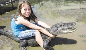 薩曼莎從小就在鱷魚(yú)群中長(zhǎng)大,從6歲起,她就從自己的父親杰爾、母親艾琳那兒學(xué)會(huì)了如何和鱷魚(yú)摔跤、并將它們乖乖制服的藝術(shù)!薩曼莎接受記者采訪時(shí)說(shuō):“我從6歲開(kāi)始就和鱷魚(yú)們摔跤了,我的父母教會(huì)了我如何將鱷魚(yú)制服的本領(lǐng)。我的父親在5歲時(shí)曾經(jīng)被鱷魚(yú)咬過(guò)一次,從那以后,他就學(xué)會(huì)了如何搏斗并制服兇猛的鱷魚(yú)。當(dāng)我一開(kāi)始和鱷魚(yú)摔跤時(shí),我真有點(diǎn)兒害怕,不過(guò)我的父親一直在我身邊,他總是知道該如何對(duì)付它們。如果我面臨危險(xiǎn),他就會(huì)過(guò)來(lái)幫助我。”