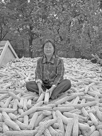 高囡去年給婆婆曾拍過一張照片,照片中的劉秀芹坐在高高的玉米堆上,身穿暗紅色格子襯衣,藏青色長褲,皮膚是長期日曬后的紅色,眼角爬滿了皺紋,面帶微笑,欣慰而坦然。