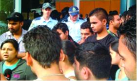 在學(xué)生們心情慌亂地填寫轉(zhuǎn)校表格時(shí),警方和保安在現(xiàn)場嚴(yán)陣以待。這些表格由清盤人派發(fā),AUSTECH學(xué)院的管理層沒有到場回答學(xué)生們的疑問。
