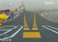 9月25日,我國第一艘航空母艦“遼寧艦”在中國船舶重工集團公司大連造船廠正式交付海軍。圖為中國首艘航母機庫內停放的疑似艦載機。(央視截圖)