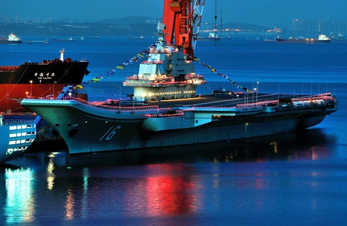 網(wǎng)友拍我航母平臺(tái)“遼寧艦”節(jié)日期間霓虹燈閃亮裝點(diǎn)海灣