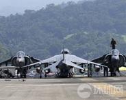 在此次美菲聯(lián)合登陸演習中,一架AV-8B鷂式戰(zhàn)斗機從好人理查德號兩棲攻擊艦上起飛。